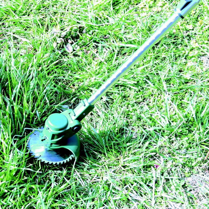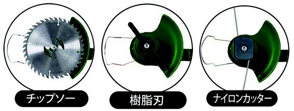 背が高く伸びてしまった草むらから密集して生い茂る雑草まで、さまざまな草刈りに対応できる コードレス草刈り機です。樹になりかかっている太い草はチップソー、柔らかいが密集している 雑草はナイロンカッターと、3種の回転刃でほとんどの草刈りを短時間で解決!予備バッテリー もついているので、広いお庭の草刈りにも使えます。伸びた草に気づいたら電源を気にせず使い まわせる、頼れる庭の協力バリカンです。