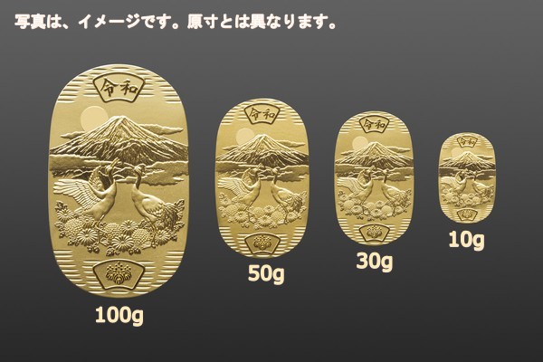 霊峰富士からのぞく日の出のもと、咲き誇る菊花と向かい合う、双祥鶴の姿がなんとも華やかな 絵柄の大判小判。移り行く時代に受け継ぐ家宝として、不変の価値をもつ純金の大判小判はいか がでしょうか。