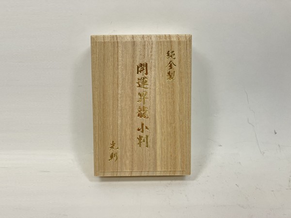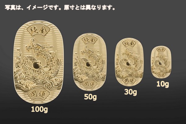 上昇と繁栄を象徴する勇壮に翔け昇る力強い姿。 財運・長寿などの願いを叶える「宝珠」を掴んだ龍が天へ上昇する縁起の良い図柄 筋はハッチング技法で、純金と開運の文字は立体的に浮出るデザインです