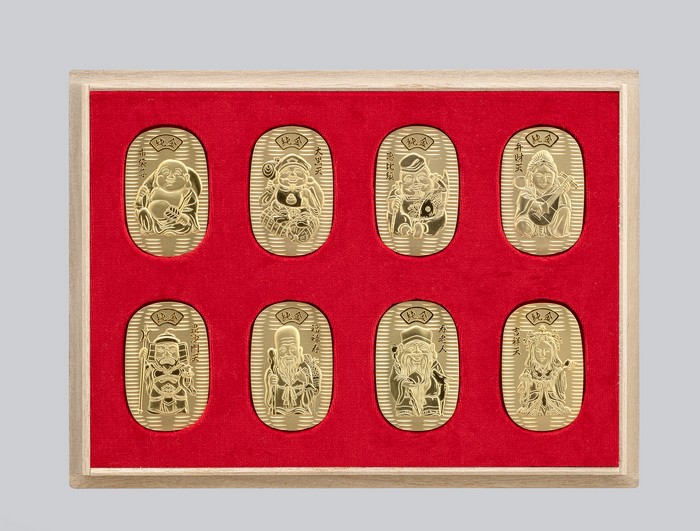 八人の神様が、様々なご利益をもたらしてくださることを願って。不変の価値ある純金製 の小判はいかかでしょうか?美しく装飾された小判は、お守りとしても頼もしい存在。 ご家宝として代々受け継ぐ価値ある存在です。